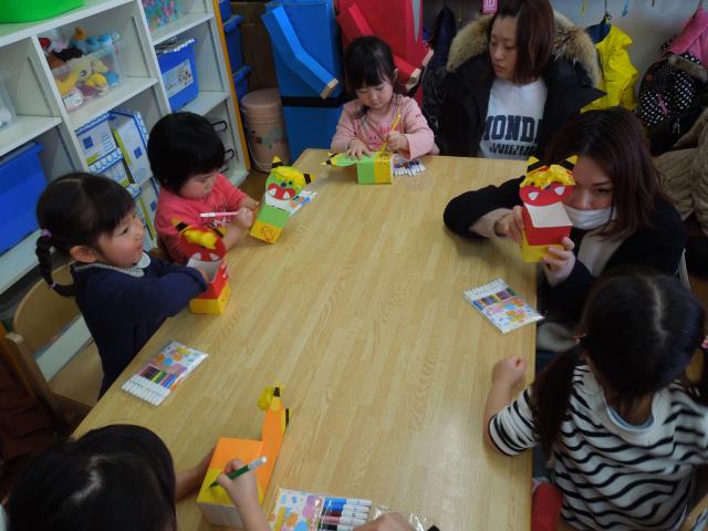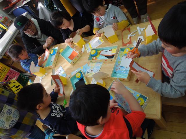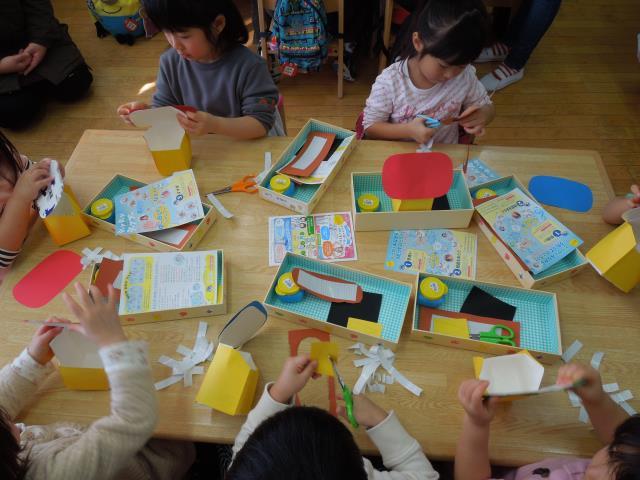 たんぽぽさんと、ちゅうりっぷさんは”豆まき”の時に使う『箱』を作りました。
