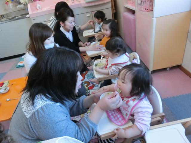 お母さんに食べさせてもらって、嬉しそうにしていましたよ。