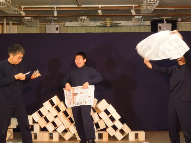 新聞紙あそびでは新聞ずもう・新聞侍・キャッチボールなど。