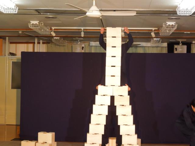 積み木遊びではタワー・キリン・一輪車・ハト時計など。