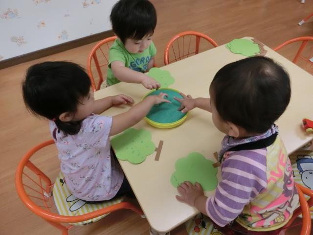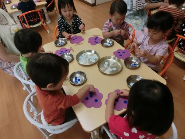 上手にシールを貼ったり、指スタンプをして ぶどうの粒の模様ができました。