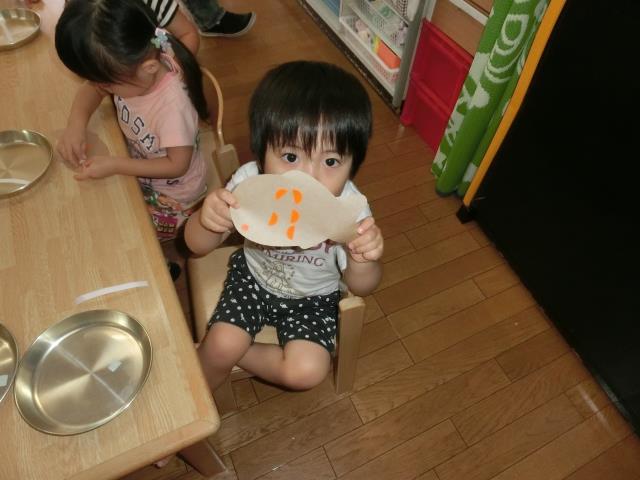 たんぽぽさんは、先日のたい焼きの皮に”あんこ”を貼りました。
