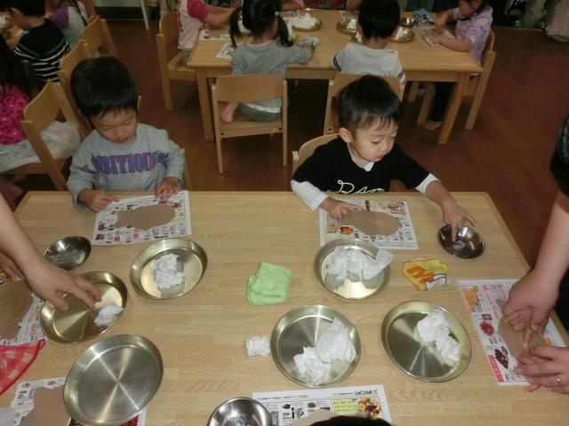 ティッシュを丸めて"あんこ”に見立てたものを、のりでペタペタ。