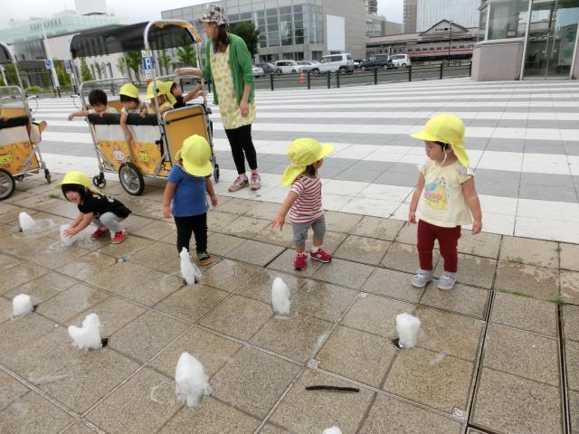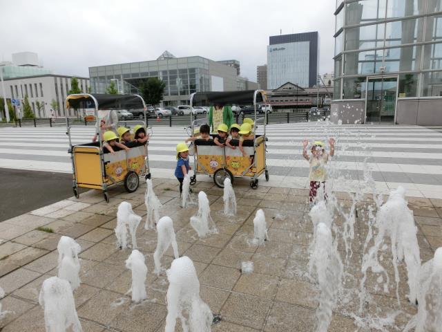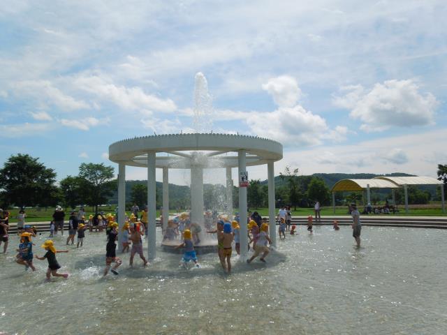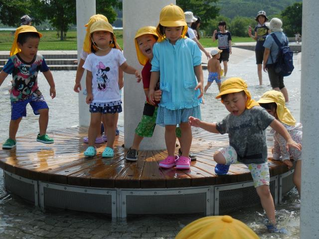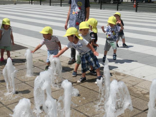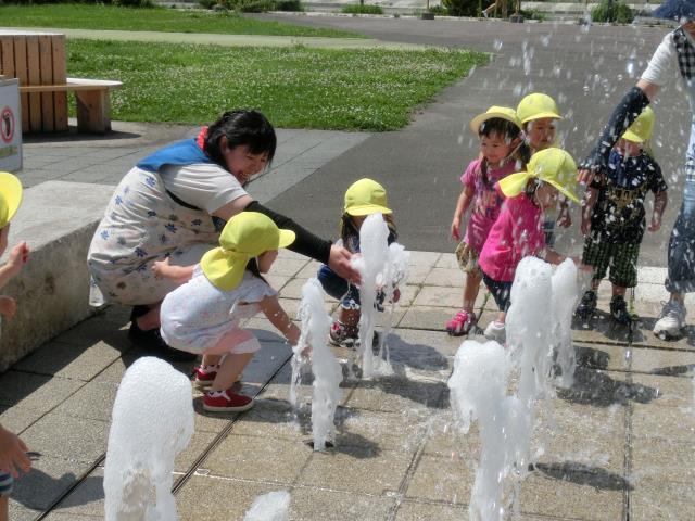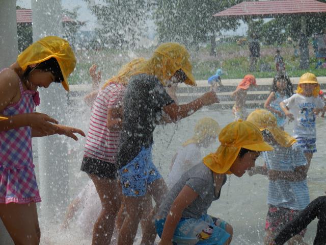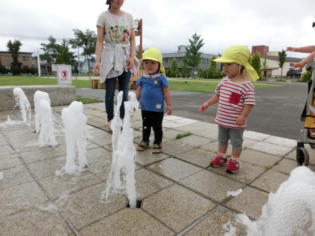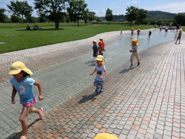 噴水ではみんなキャーキャーいいながら水の感触を楽しんでいました。
