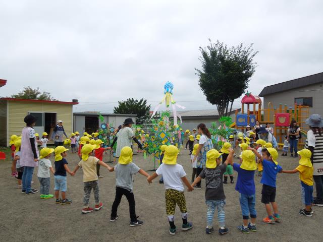朝から自分で作った短冊を飾り 準備はOK!気温的に丁度良く、みんなで輪になって盆踊りを踊りました。