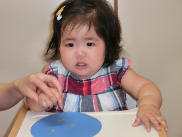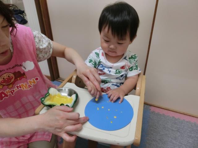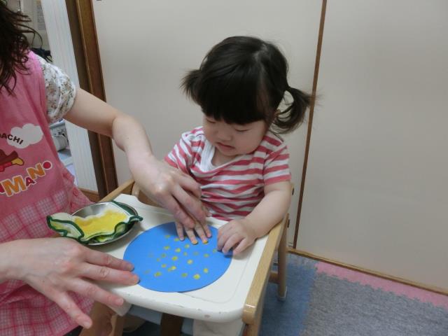 かわいいお指のスタンプで、黄色いお星さまを表現しました。