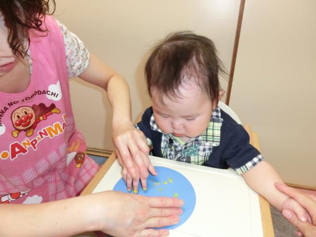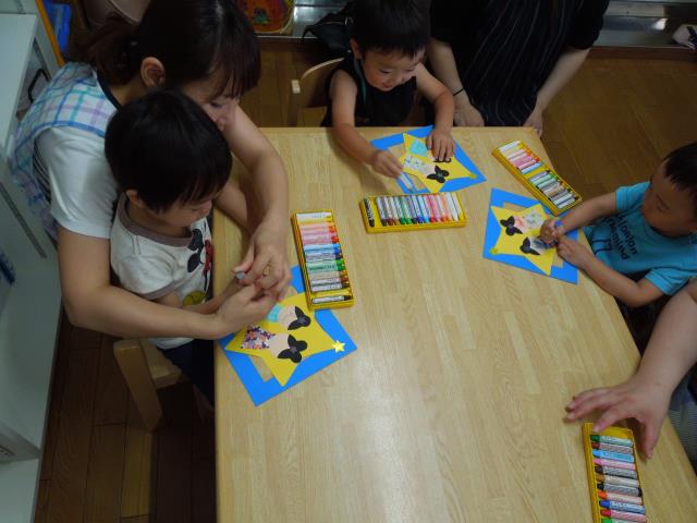 お父さん・お母さんに見守られながら、クレヨンでお顔を上手に描いていましたよ。