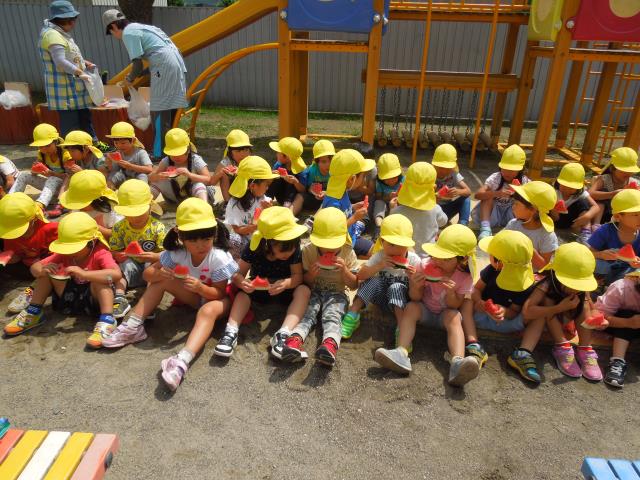 子ども達は給食の先生が切ってくれたスイカを美味しくいただきました。