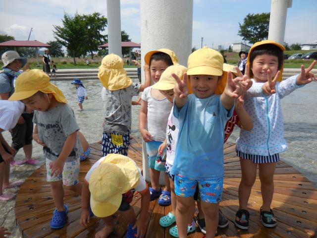 ちゅうりっぷさん・さくらさん・すみれさんは、香りゃんせ公園へ行って水遊びをしてきました。