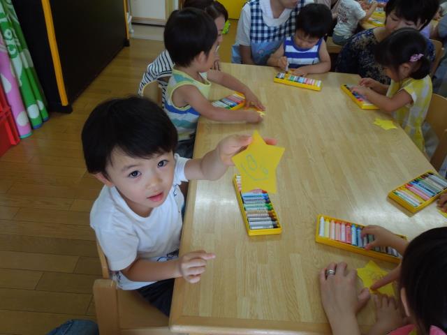 ひよこ組さんでも『七夕制作」で、短冊作りをしましたよ。