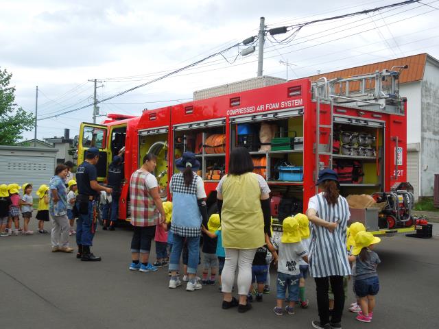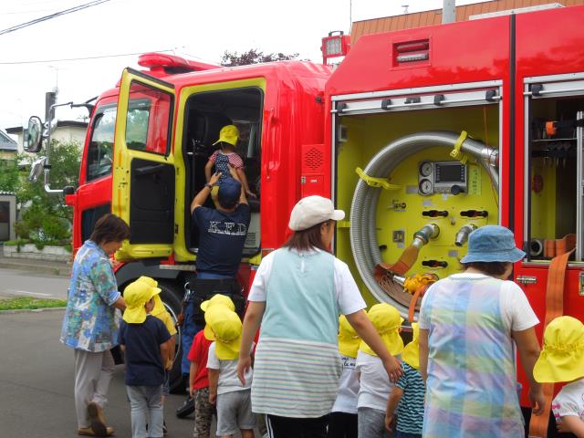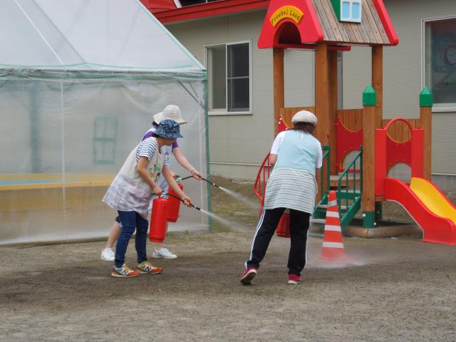 その後は、先生方の消化器訓練のお手伝いをしたり、消防車に乗せてもらったり見せてもらったり。