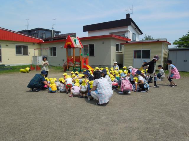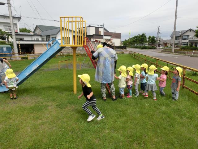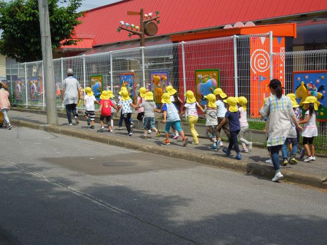 広場では「もっと遠くまで逃げなければならない時もあるかもしれないので、その時は頑張って歩くように。」と言う、園長先生のお話を聞いて終了となりました。
