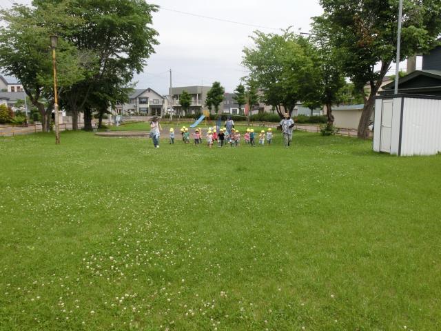 ちゅうりっぷ組さんは南中町公園まで20分~25分かけて歩いてお散歩に行ってきました。