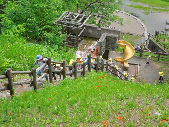 たんぽぽさんは、児童公園までお散歩に行って来ました。