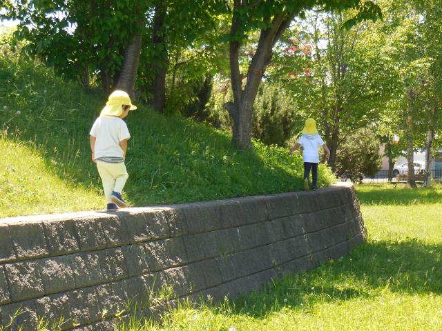 公園では先生が帰りの心配をする程(歩いて帰れるかな…)固定遊具であそび、ずっと走り回っていました。