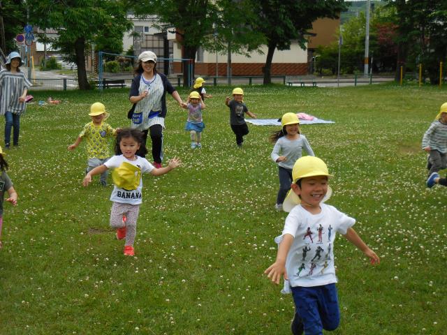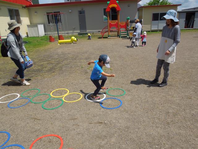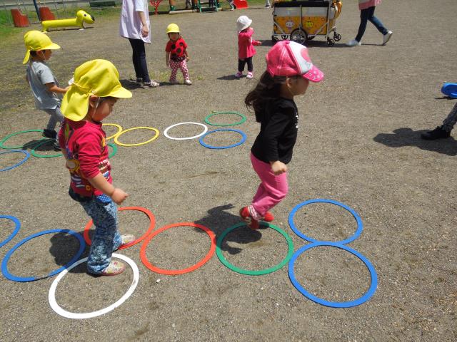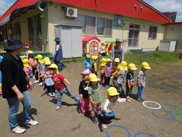 はじめは つくし組さんと一緒にあそんでもらい、その後は ちゅうりっぷさんの遊びに参加させてもらい体を動かしました。