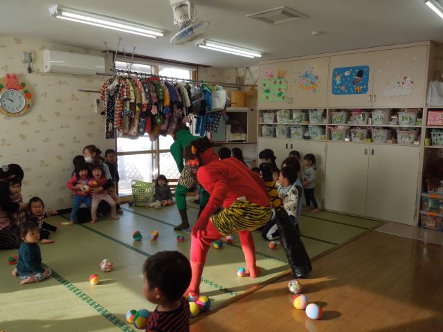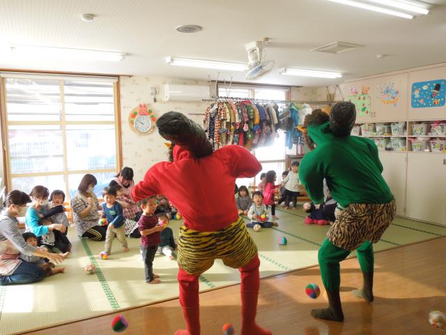 (ちなみに、小さい子が落ちている豆を拾って食べたら困るので、0,1歳児はボールで鬼をやっつけます。)