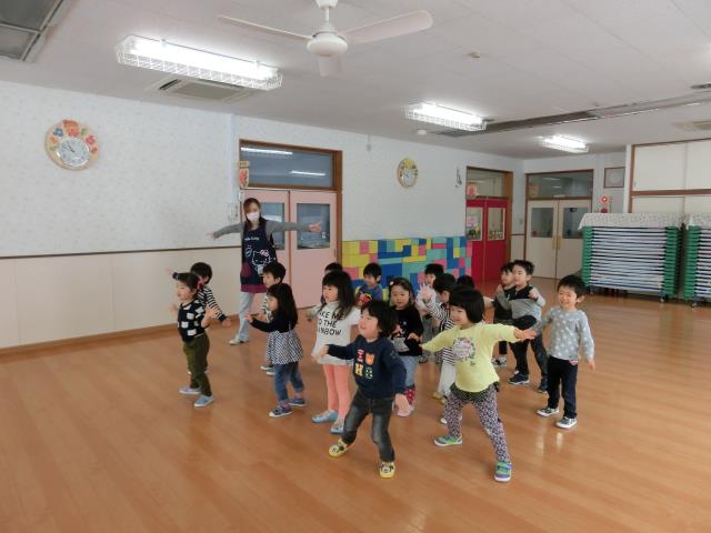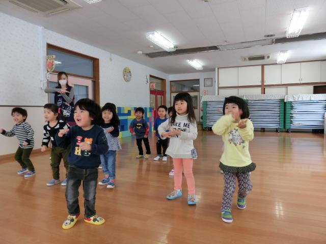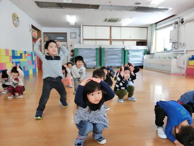 〝しゅりけんにんじゃ”を踊ったり〝けんぱであそぼう”の音楽をかけながら、けんぱをしたり…。