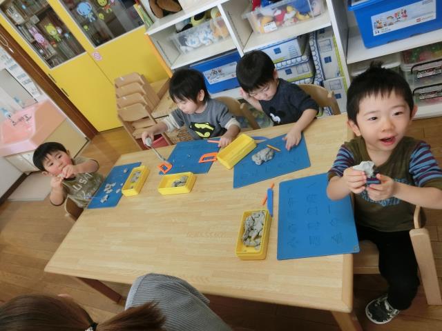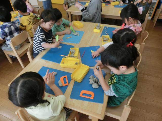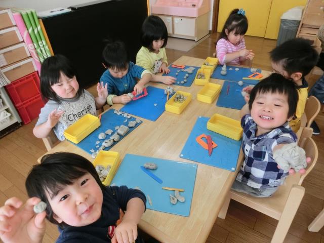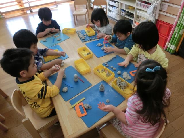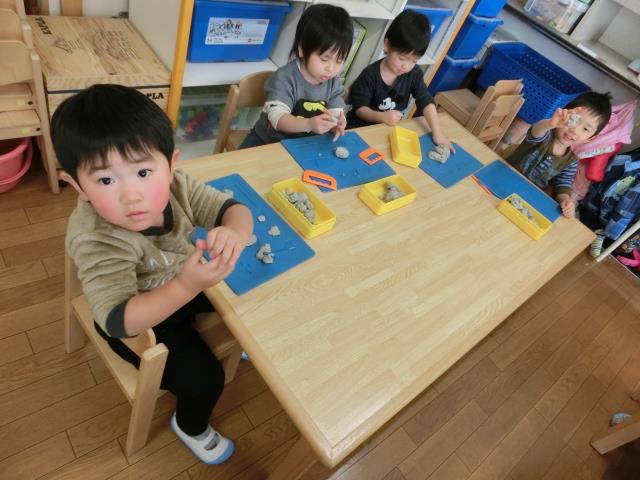 今日はたんぽぽ組の子ども達が楽しみにしていた粘土あそびをしました。