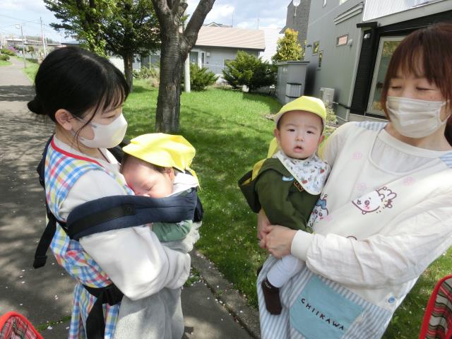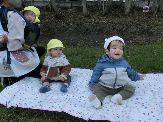 春の自然に触れて笑顔を見せたり、声を出して楽しむ姿も見られましたよ!