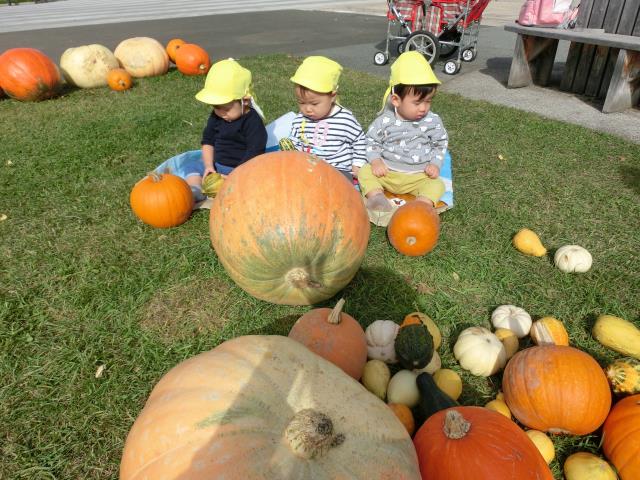 芸文前広場では、ハロウィンコーナーを見たり、カボチャに触れて感触を楽しんできましたよ~!