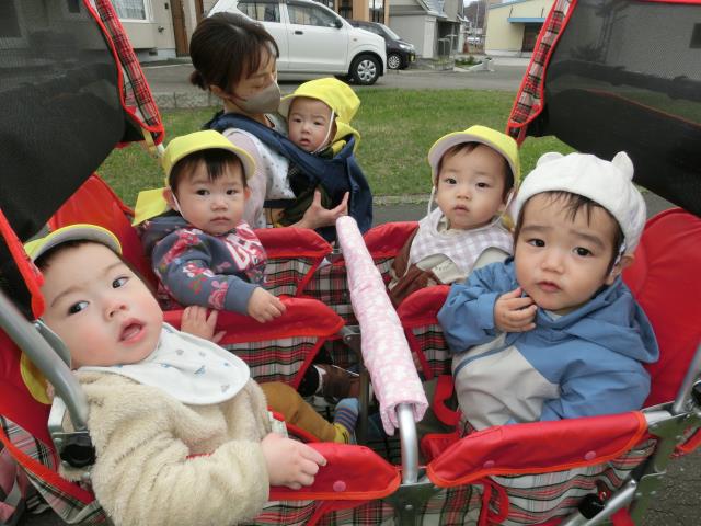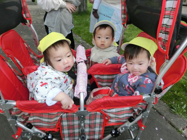 嬉しそうな表情をしたり心地良さそうにベビーカーに乗って、周囲の景色を見ていたひよこ組さん!