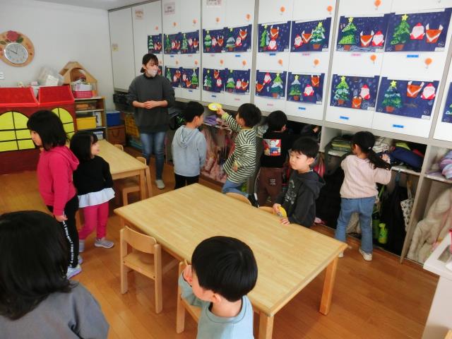 今日はクリスマスイブということで、クリスマス会を行いました。