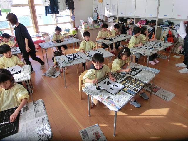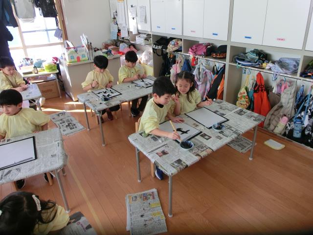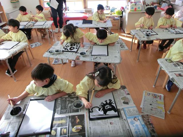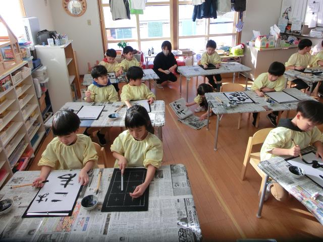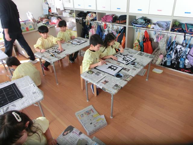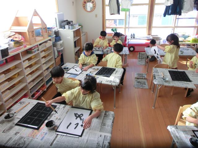今日のすみれぐみは、習字を行いました。