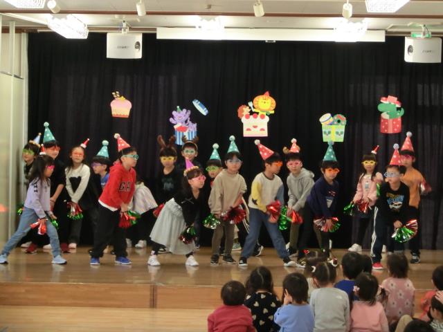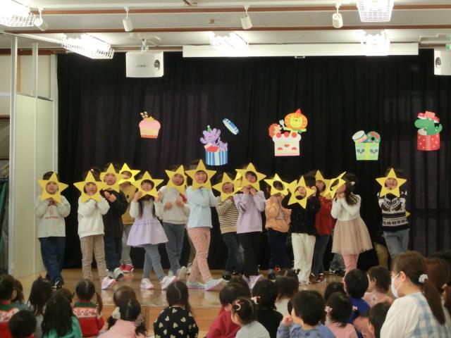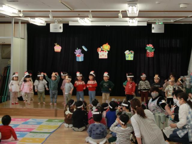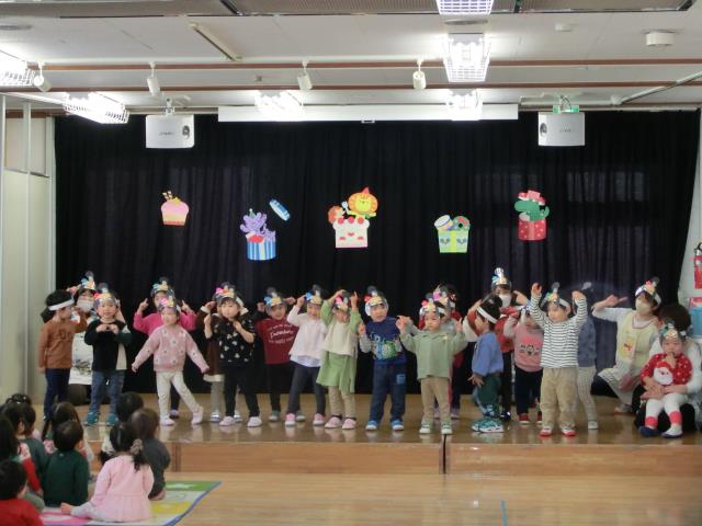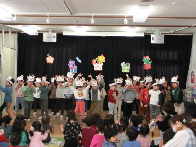 おゆうぎ会で発表した曲などをアレンジしたり、クリスマスの飾りを付けたりして、各クラス発表をしています。