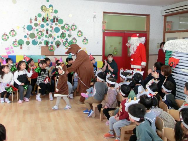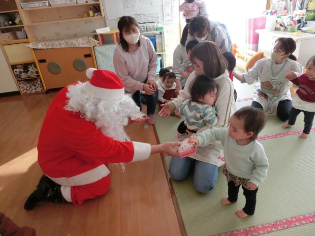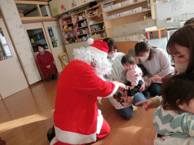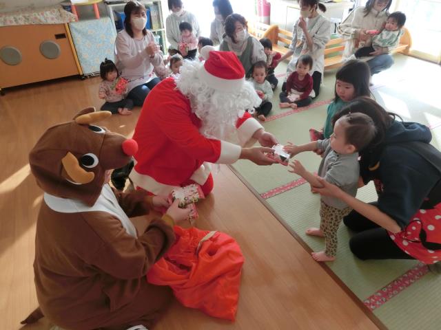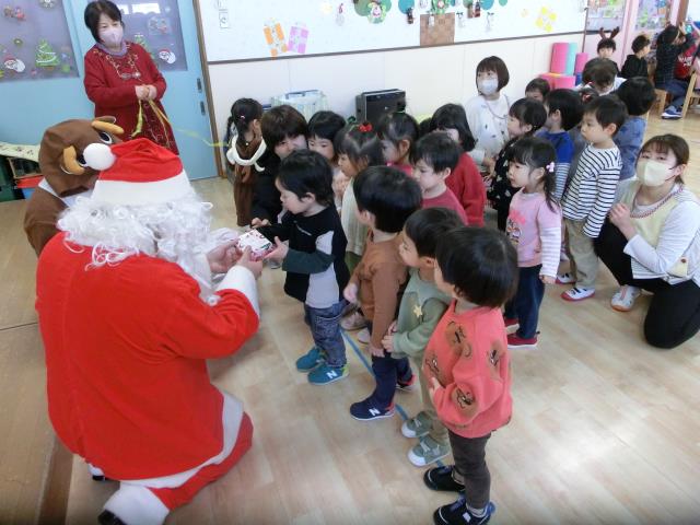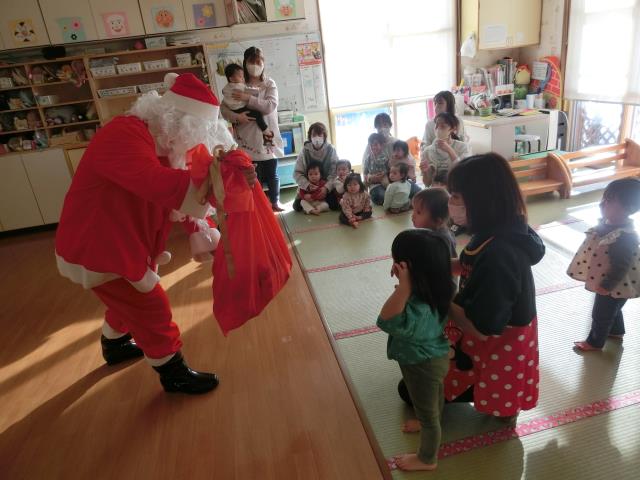 発表後はお部屋へ戻ったひよこ・つくし組さんの所へ、サンタさんが登場しました。