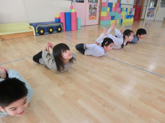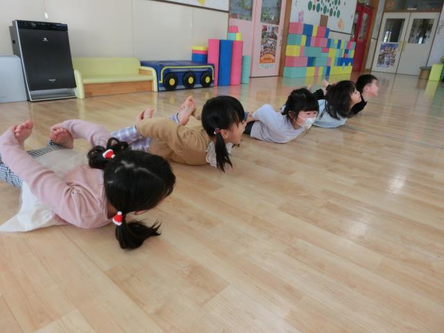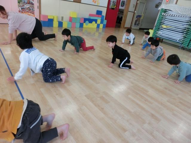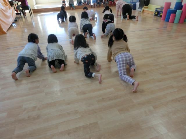 「うさぎ」「こうま」「めだか」になって体の使い方を意識しながら行いました。