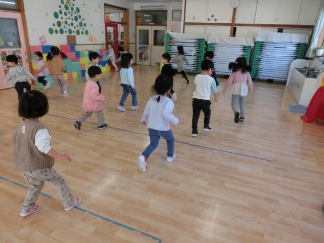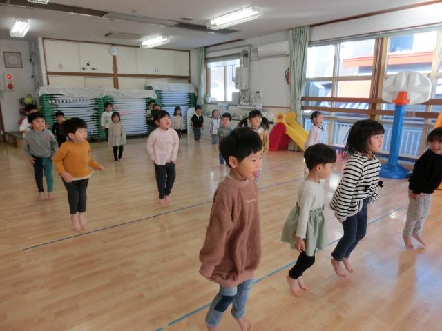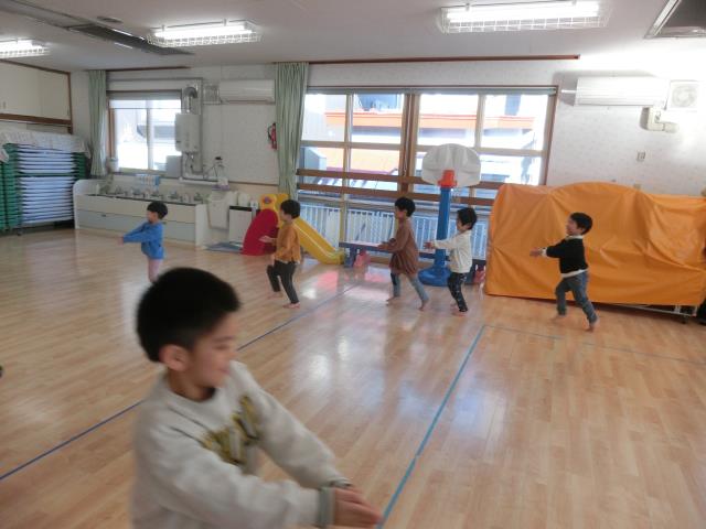 今日のちゅうりっぷぐみは、ホールでリズム運動をした後、お楽しみゲームをしています!!