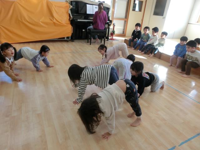 ピアノに合わせて動物などになりきって、体を動かして楽しみましたよ♪