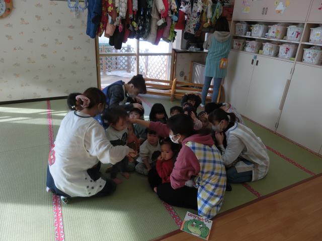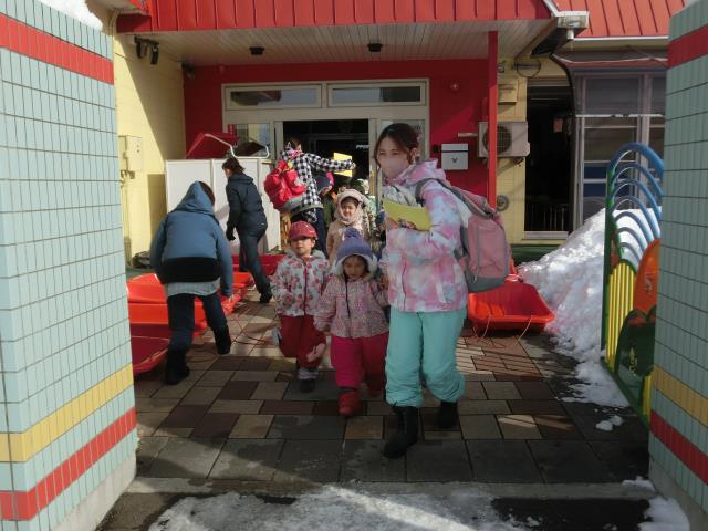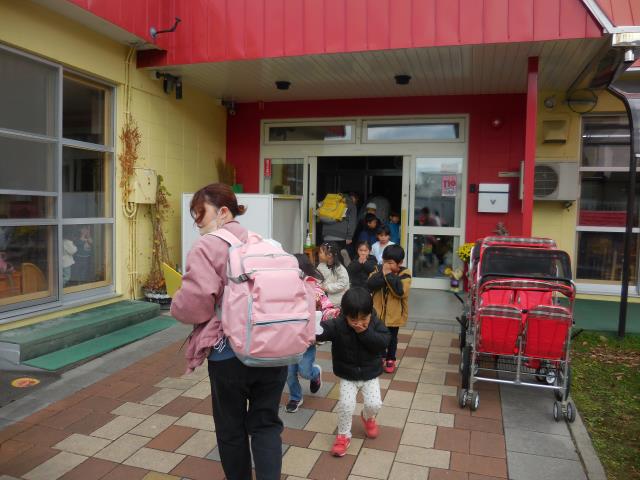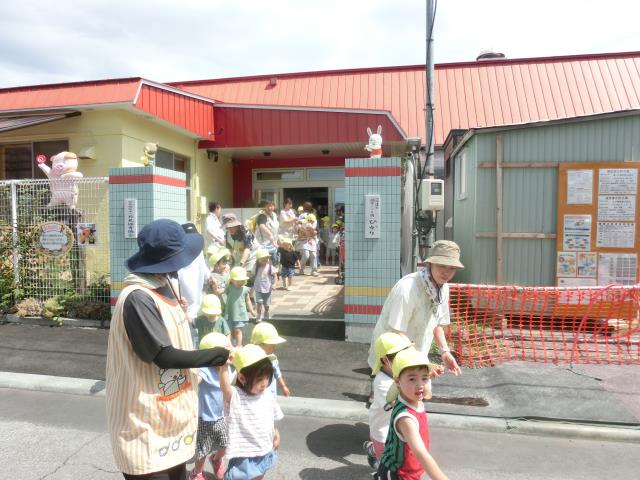 突然のことに驚いたお友だちもいましたが、先生のお話をよく聞いて上手に避難出来ていた子ども達です。