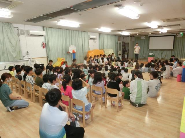 園長先生や担当の先生から避難時の大切さのお話があり、質問にも積極的に答えていた子ども達です。