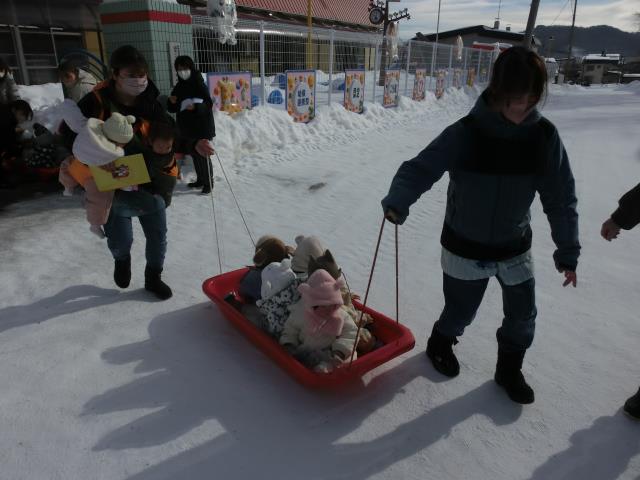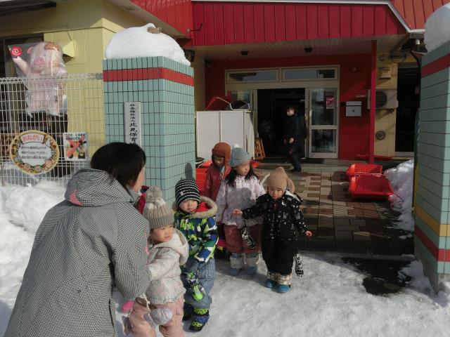 その後はスノーウエアを着て、園前駐車場へ避難。