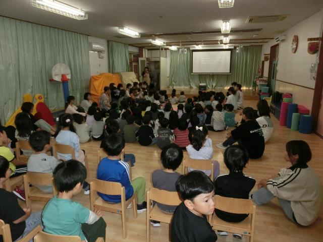 最後は園長先生から避難時の大切さをお話してもらい、真剣に聞いていた子ども達です。