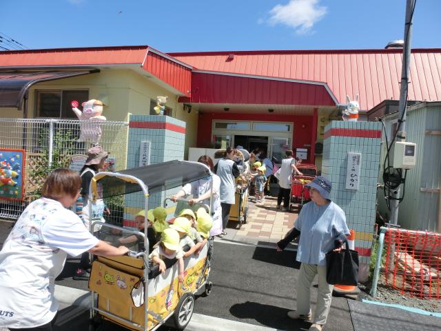 久しぶりの訓練だったため、ドキドキしているお友だちもいましたが、ベルの音や放送をよく聞いて上手に避難していた子ども達です。