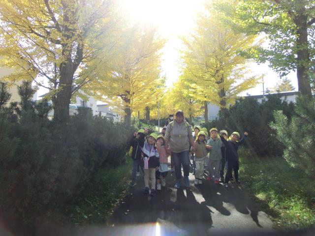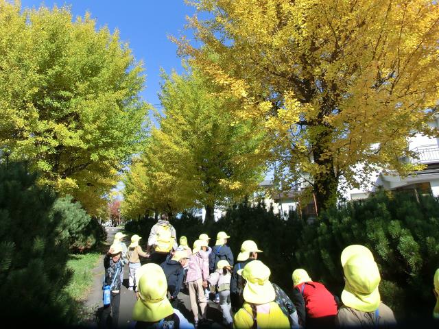 イチョウ並木をみんなで歩き、黄色一色のトンネルをくぐってきましたよ!!