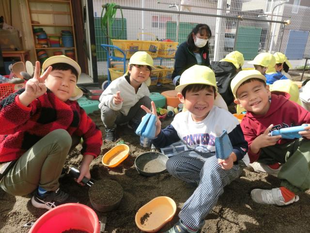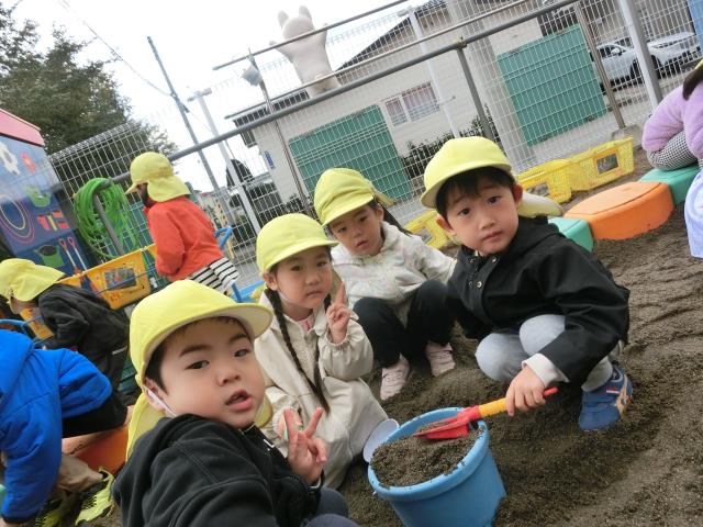 お外では砂場遊びをしています。