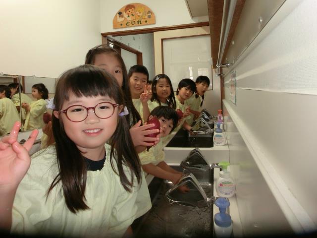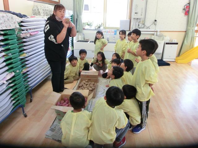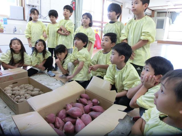 今日のすみれぐみは、明日の焼きいもで使うジャガイモとサツマイモを下準備として綺麗に洗っています。
