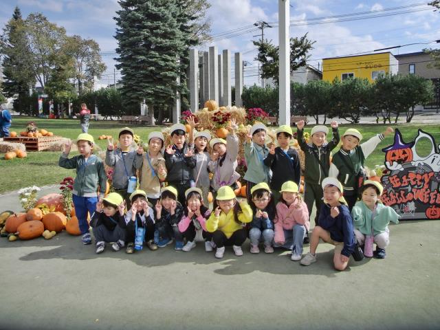 芸文前広場では、ハロウィン用のカボチャの飾りに大興奮していましたよ!!