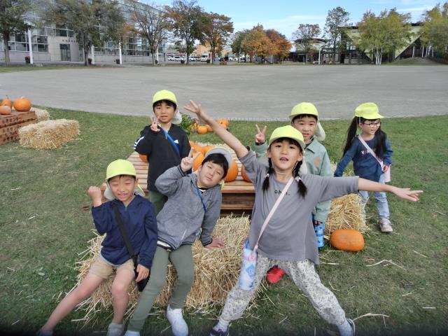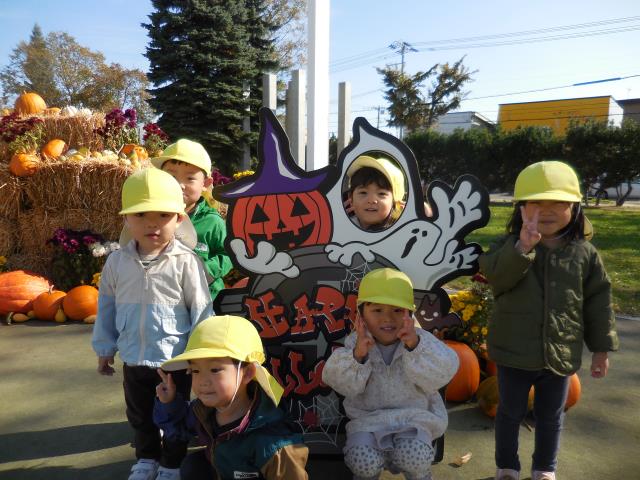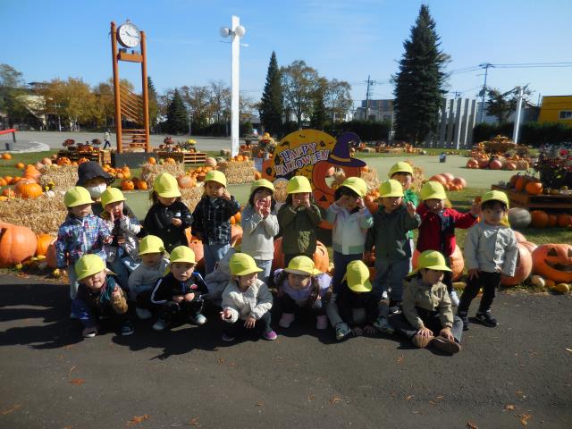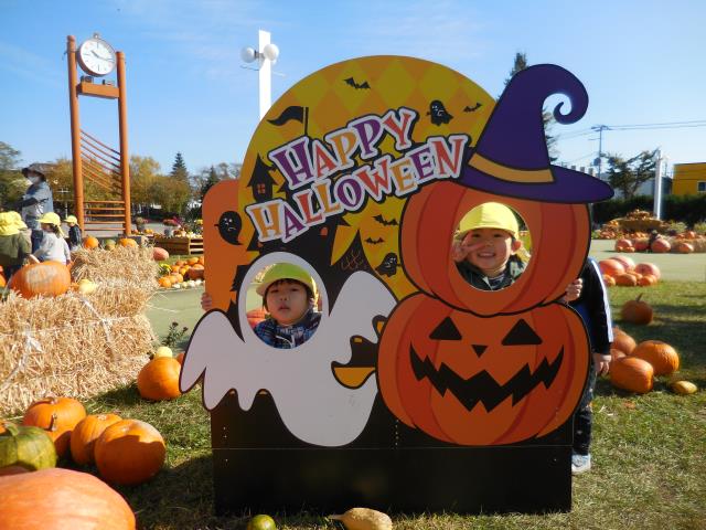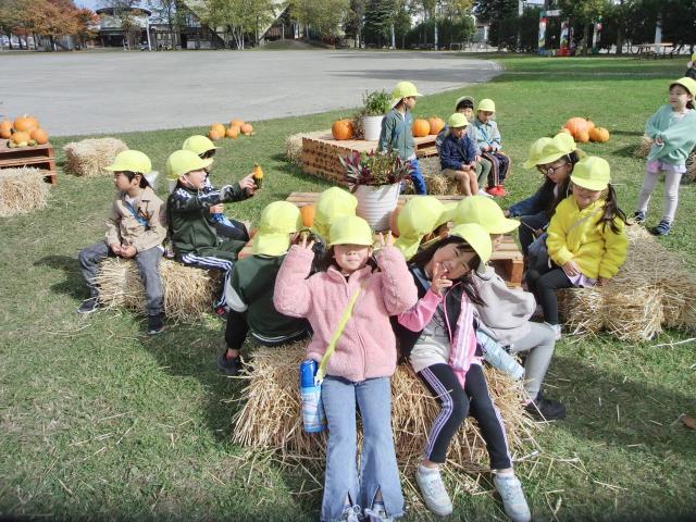 沢山のカボチャに大喜びで、色や形等をじっくりと見て楽しんでいましたよ。