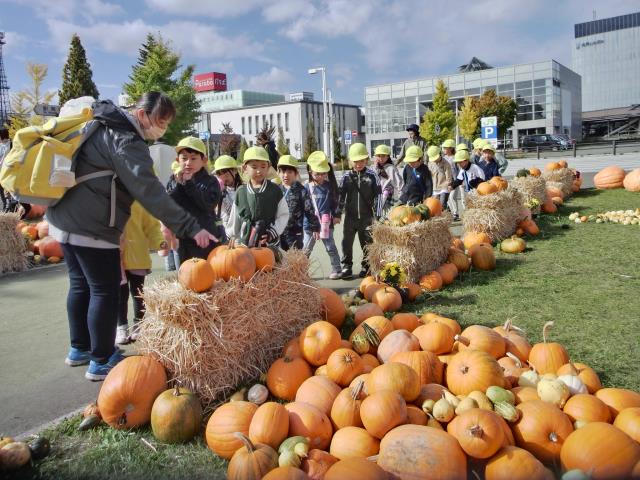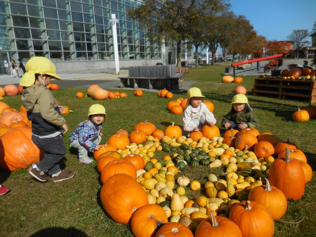 芸文前広場では、ハロウィンコーナーを見たり、カボチャに触れて感触を楽しんできましたよ~!