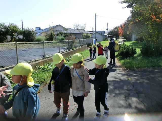 今日のすみれぐみは、秋晴れの中久々のお散歩に出掛けています。