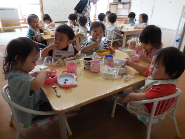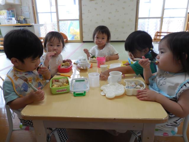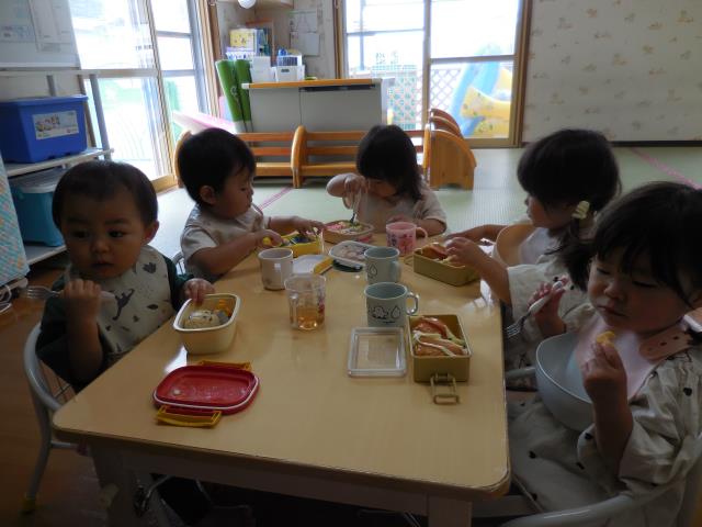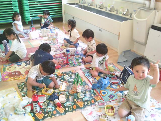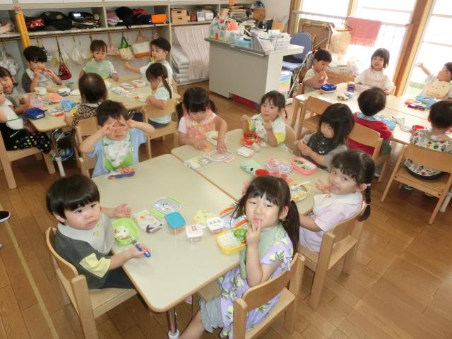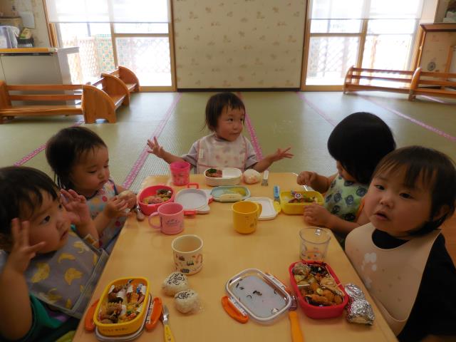 園に帰ってきてからは、作ってもらったお弁当を嬉しそうに食べていた子ども達です!