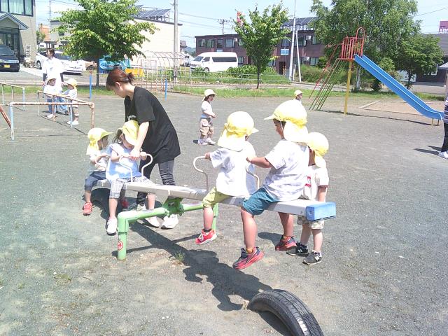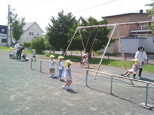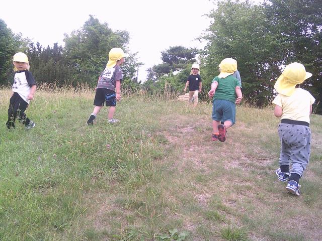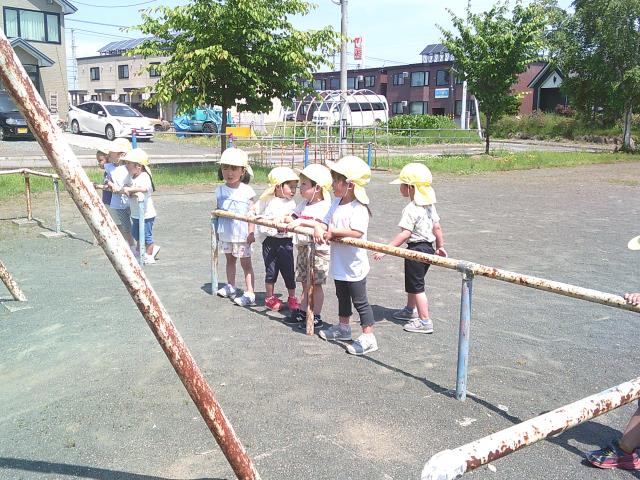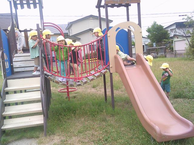 暑い中頑張って歩き、公園でも遊具の順番を守って遊んでいましたよ!!