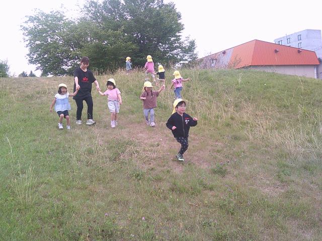 公園ではブランコや滑り台を楽しんだり、ちょうちょを追いかけて走ったり、大きな山に嬉しそうに登ったりして、自然にも沢山触れながら遊んできましたよ!!