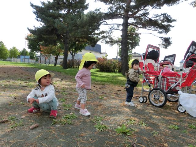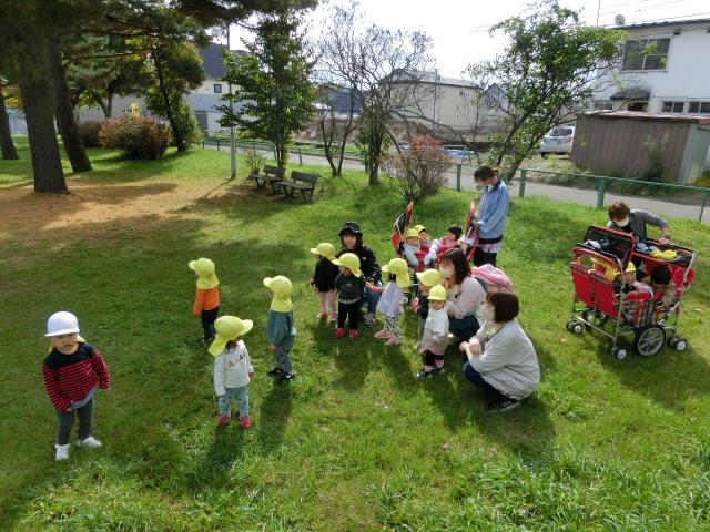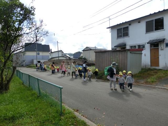 異年齢児同士で手を繋いで、長いコース・短いコースに分かれてなかよし公園に行きましたよ。