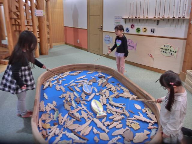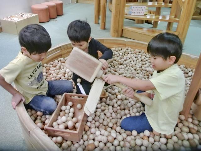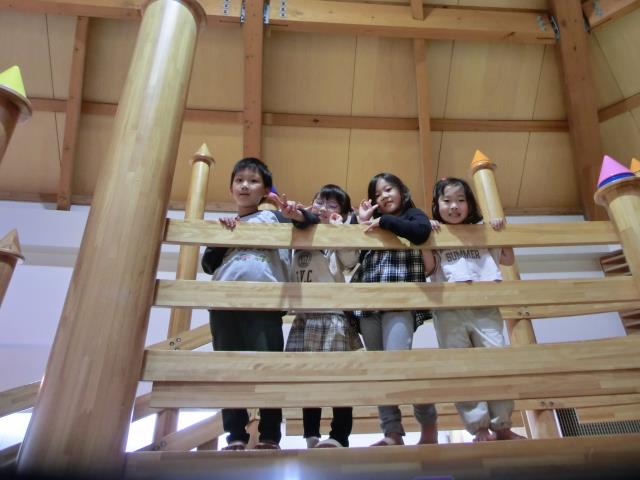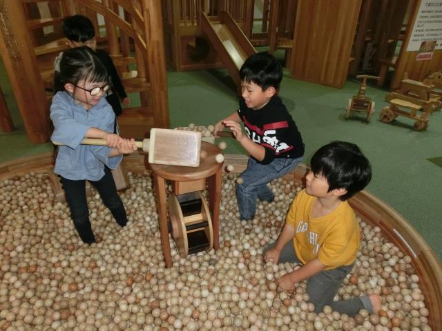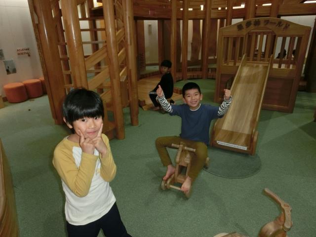 木の玩具がたくさんある果夢林館と水族館を2チームで交代しながら楽しんできました。
